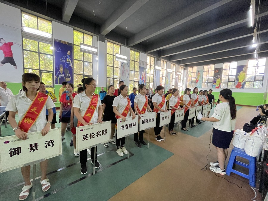 8:30分至9點是運動員檢錄時間,物業(yè)公司細(xì)心準(zhǔn)備了接待工作,檢錄完畢物業(yè)集團(tuán)總經(jīng)理王化啟向參賽選手致辭,隨后物業(yè)集團(tuán)總經(jīng)理助理富志剛帶領(lǐng)運動員進(jìn)行5分鐘熱身運動,同時根據(jù)抽簽將對陣圖制作完畢,9點20分,比賽正式開始。