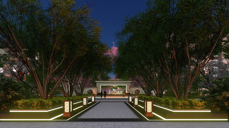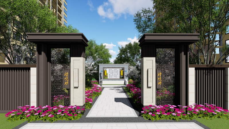 園區(qū)道路采用人車分流的設(shè)計(jì)方式,避免大量私家車對居住環(huán)境的影響,保證小區(qū)的安全與安靜。設(shè)計(jì)結(jié)合單元入口、車庫位置及各功能分區(qū),遵循新中式景觀特點(diǎn),圍合出院落空間。