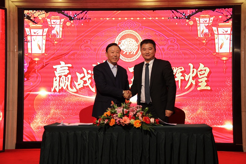 于寶權(quán)董事長(zhǎng)分別與遼陽公司總經(jīng)理孫繼莊、天華公司總經(jīng)理宋偉、天泰公司總經(jīng)理于洪濤、盤錦公司總經(jīng)理周春雷、物業(yè)公司總經(jīng)理王化啟、萬豪酒店總經(jīng)理馮國、商業(yè)公司總經(jīng)理陳雷簽訂2019年目標(biāo)管理責(zé)任狀。