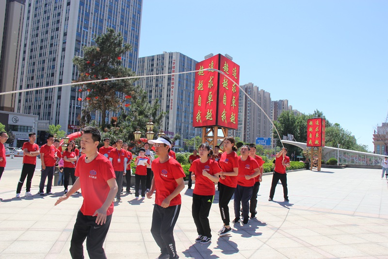 伴隨著于總一聲令下,比賽正式開始。本屆運(yùn)動(dòng)會(huì)共設(shè)8個(gè)團(tuán)體項(xiàng)目,包括集體跳繩、拔河、海底撈月、激情傳遞、團(tuán)結(jié)背靠背、協(xié)作過河、無敵風(fēng)火輪和眾星捧月。首先進(jìn)行的是集體跳繩項(xiàng)目,每隊(duì)8人,2人搖繩,6人開跳,1分鐘為限,次數(shù)多者為勝。盤錦公司在總經(jīng)理周春雷的帶領(lǐng)下,取得第一項(xiàng)比賽的冠軍,來了一個(gè)開門紅,集團(tuán)機(jī)關(guān)隊(duì)取得第二,物業(yè)公司和建筑公司并列第三。