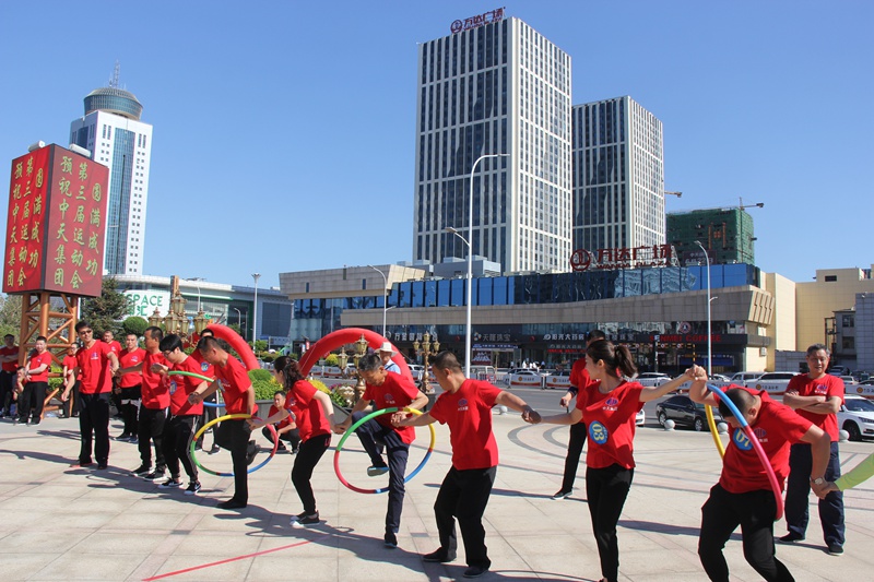 “激情傳遞”每隊(duì)10人。比賽開始前,所有隊(duì)員手拉手平舉排成一隊(duì),從一端一個(gè)人的手中將第一個(gè)呼啦圈進(jìn)行依次專遞,直至第5個(gè)呼啦圈傳遞到隊(duì)伍的最后一個(gè)人手中。本項(xiàng)目考驗(yàn)的是團(tuán)員之間團(tuán)結(jié)協(xié)作的能力,遼陽公司以絕對的優(yōu)勢取得第一名,萬豪酒店和集團(tuán)機(jī)關(guān)分列二、三名。