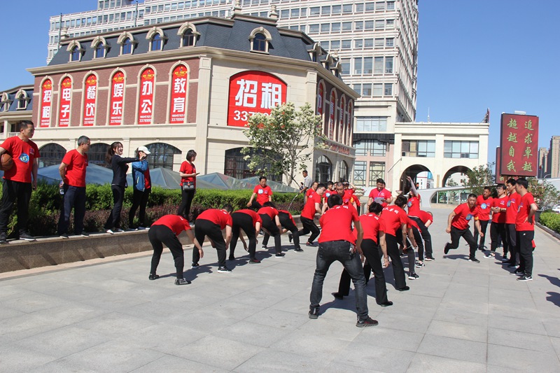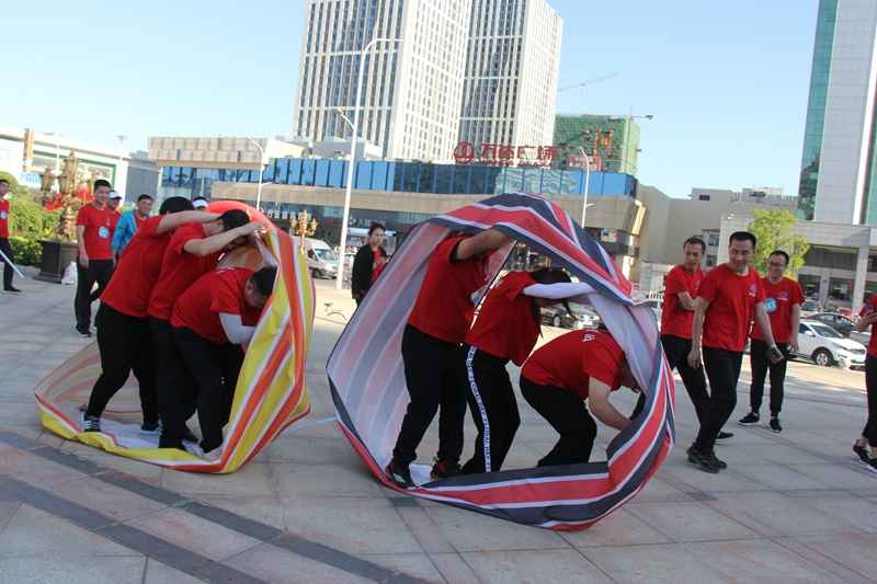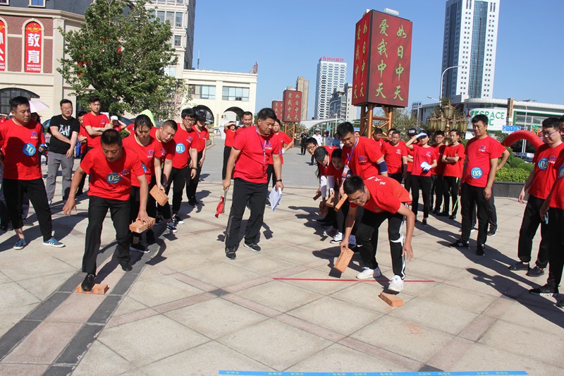 “協(xié)作過河”每隊(duì)5人六塊磚,從出發(fā)點(diǎn)到最后一名過河完畢,任何人腳不能落地,直至最后一個(gè)人一塊磚到達(dá)終點(diǎn)。這項(xiàng)比賽不僅需要合理安排好隊(duì)形,保持穩(wěn)定,還要講究遞磚的方法,以便節(jié)省時(shí)間。最終商業(yè)公司獲得了該項(xiàng)目的冠軍,天華公司和遼陽公司取得第二、三名。