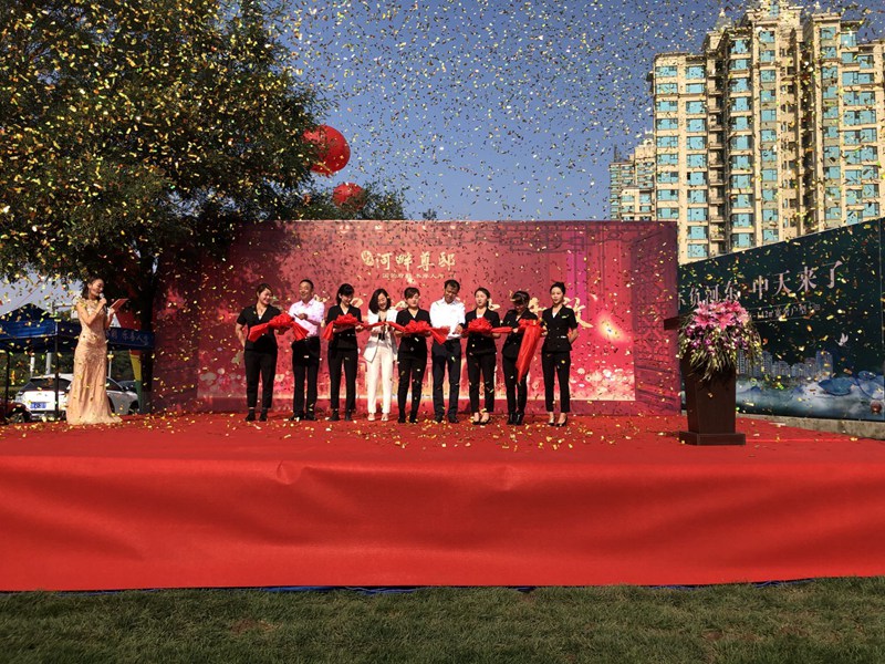 9點(diǎn)28分,集團(tuán)總經(jīng)理于洪波、營(yíng)銷策劃總監(jiān)陳立志、遼陽分公司總經(jīng)理孫繼莊、遼陽分公司銷售總監(jiān)孫冬梅共同上臺(tái)為今天的慶典儀式進(jìn)行了剪彩,標(biāo)志著中天·河畔尊邸營(yíng)銷中心正式亮相并進(jìn)入了銷售倒計(jì)時(shí)。剪彩儀式結(jié)束后,沙盤區(qū)、活動(dòng)區(qū)、洽談區(qū)擠滿了前來咨詢的客戶,置業(yè)顧問們耐心的解答,并有序的安排客戶參加了室內(nèi)的暖場(chǎng)活動(dòng)。中天·河畔尊邸營(yíng)銷中心將新中式建筑之美的每一處留白、每一方陳設(shè)、每一個(gè)角度都展現(xiàn)的淋漓盡致。踱步之間,中天集團(tuán)的匠心格局,現(xiàn)代東方的人文禮序,精彩的香道表演、茶藝表演、國(guó)畫DIY、肖像漫畫以及現(xiàn)場(chǎng)古箏、琵琶、二胡的演奏完全將大家?guī)肓诵轮惺綀?chǎng)景,讓當(dāng)日到訪的客戶都親身感受了一場(chǎng)文化盛宴。