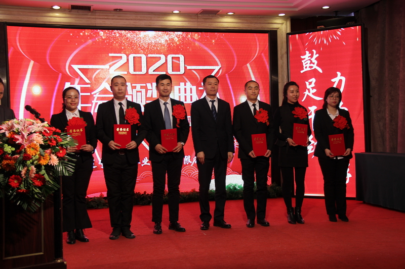 針對(duì)2019年落實(shí)計(jì)劃指標(biāo)情況,兌現(xiàn)獎(jiǎng)勵(lì),天華公司、遼陽公司、物業(yè)公司分別獲得了獎(jiǎng)勵(lì),于寶權(quán)董事長為他們頒發(fā)獎(jiǎng)金。