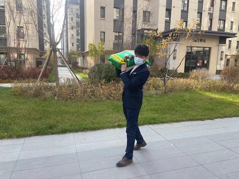 盤錦及撫順物業(yè)公司服務(wù)的幾個(gè)項(xiàng)目,都是新交房小區(qū),面對(duì)入住業(yè)主較少,裝修工人滯留,物業(yè)積極聯(lián)系社區(qū)做好封控人員的核酸檢測工作。由于人員緊缺,不少物業(yè)人員24小時(shí)堅(jiān)守在項(xiàng)目,一人身兼數(shù)職,保安剛幫業(yè)主把物品送上樓,又要馬上幫助保潔人員對(duì)大堂進(jìn)行消殺工作;保潔員除了園區(qū)衛(wèi)生清潔,樓道消殺,還要上門收垃圾;房管員受裝修完未入住業(yè)主委托上門澆花……一件件小事,卻大大的溫暖了業(yè)主,撫順中天首府的業(yè)主還專門在撫順交通廣播電臺(tái)上講述了中天物業(yè)的溫暖故事。為了讓業(yè)主安心居家,物業(yè)還采購蔬菜包、大米等物資免費(fèi)為居家業(yè)主發(fā)放,同時(shí)為了減少聚集,物業(yè)工作人員挨家挨戶送到業(yè)主手中,讓防控有力度,抗疫有溫度。