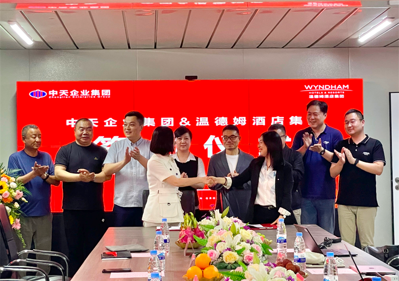 2023年6月5日下午,中天企業(yè)集團(tuán)與溫德姆酒店集團(tuán)簽約合作儀式暨大連中天溫德姆酒店項目啟動會在中天企業(yè)集團(tuán)大連城市公司舉行,標(biāo)志著全球最大的酒店集團(tuán)之一的溫德姆品牌正式入駐大連,這也是溫德姆品牌首次落戶東北三省,相信中天企業(yè)集團(tuán)與溫德姆酒店集團(tuán)的強(qiáng)強(qiáng)聯(lián)合,必將為大連開啟一個全新的高端商務(wù)、旅游度假時代。