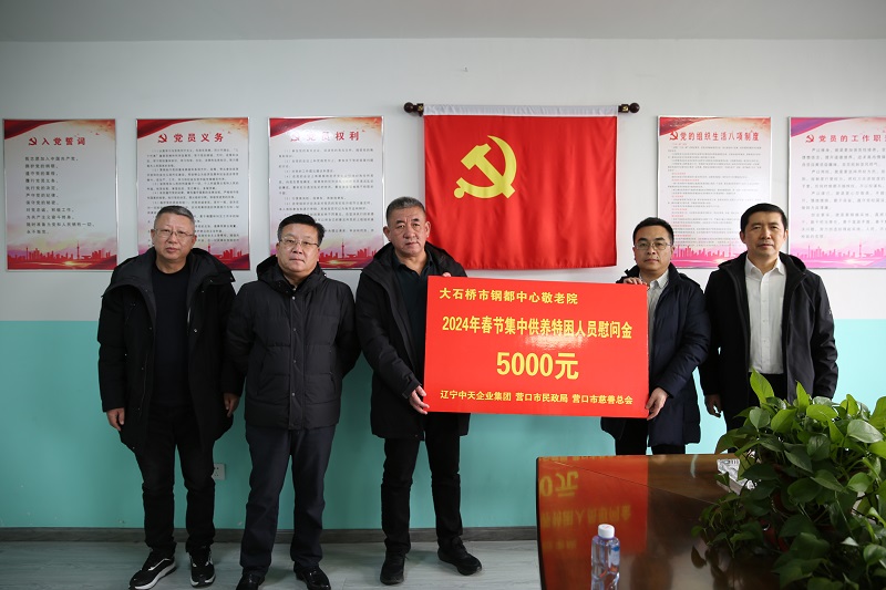 2024130日,集團(tuán)行政人力資源總監(jiān)張瑞強(qiáng)隨營(yíng)口市慈善總會(huì)副會(huì)長(zhǎng)黃渤及營(yíng)口市民政局副局長(zhǎng)王貴鵬一行走訪慰問(wèn)大石橋市鋼都區(qū)域性中心敬老院、大石橋市湯池區(qū)域性中心敬老院,代表中天企業(yè)集團(tuán)向機(jī)構(gòu)負(fù)責(zé)人詢問(wèn)了機(jī)構(gòu)相關(guān)情況和目前面臨的困難,表態(tài)中天集團(tuán)將繼續(xù)關(guān)注困難群眾需求,以企業(yè)之力建立好關(guān)愛(ài)服務(wù)的長(zhǎng)效機(jī)制。此前集團(tuán)向營(yíng)口市慈善總會(huì)捐款5萬(wàn)元,定向用于大石橋市鋼都區(qū)域性中心敬老院等三個(gè)單位、蓋州市九寨中心敬老院等九個(gè)單位集中供養(yǎng)特困人員,希望幫助他們歡度一個(gè)快樂(lè)祥和的春節(jié),用實(shí)際行動(dòng)詮釋了民營(yíng)企業(yè)的責(zé)任與擔(dān)當(dāng)。