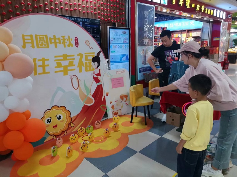 9月17日,一年一度的中秋佳節(jié)溫馨而至,為回饋長久以來顧客們對中天農(nóng)貿(mào)的支持與厚愛,中天農(nóng)貿(mào)在9月15日至9月17日節(jié)日期間舉辦了“開心圈月餅 歡樂共團圓”的活動,活動期間,全場消費達(dá)額66元的每一位顧客均可以在活動現(xiàn)場領(lǐng)取三支幸福圓圈,現(xiàn)場鋪滿象征著團圓的月餅道具,每一個道具都對應(yīng)相應(yīng)的節(jié)日禮品如砂鍋、調(diào)料瓶、盆、紙抽等等實用的小禮品,游戲規(guī)則就是套中你心儀的禮品,就可以現(xiàn)場拿走,即使顧客沒有套中也沒有關(guān)系,物業(yè)服務(wù)人員仍會給您補發(fā)一件貼心小禮物,保證每一位參與活動的顧客朋友們,都能得到一份中天農(nóng)貿(mào)送出的禮品祝福。