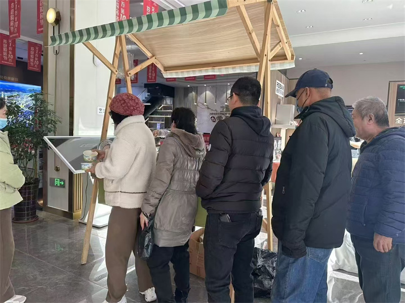 活動(dòng)現(xiàn)場(chǎng),一張長桌子,桌上擺放著各種餃子,售樓處的員工正在緊鑼密鼓的準(zhǔn)備當(dāng)中,業(yè)主和客戶已經(jīng)排起來長長的隊(duì)伍,場(chǎng)面熱鬧非凡。