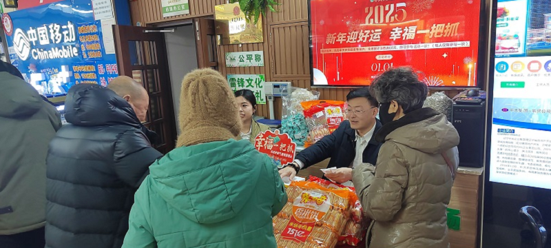 在元旦這個喜慶的日子里,農(nóng)貿(mào)公司桃花源店熙熙攘攘,一場別具一格的“一把抓幸福”促銷活動吸引了眾多顧客積極參與,市場中處處回蕩著歡聲笑語,節(jié)日的氣氛濃郁而熱烈。