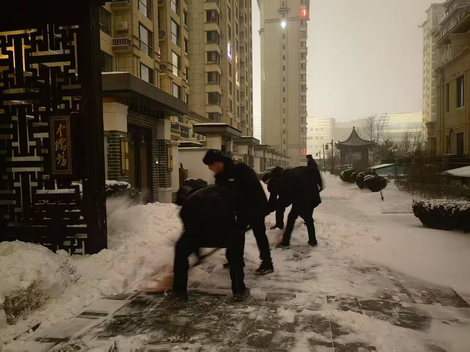 除了人工清掃,物業(yè)還調(diào)配了鏟車、吹雪機(jī)等專業(yè)設(shè)備,以提高清雪效率。在大家的共同努力下,原本被積雪覆蓋的道路逐漸恢復(fù)了暢通,為居民開辟出了一條條安全通道。許多居民看到物業(yè)工作人員忙碌的身影,也深受感動,主動加入到掃雪隊伍中來,與物業(yè)人員齊心協(xié)力,共同應(yīng)對這場風(fēng)雪挑戰(zhàn)。