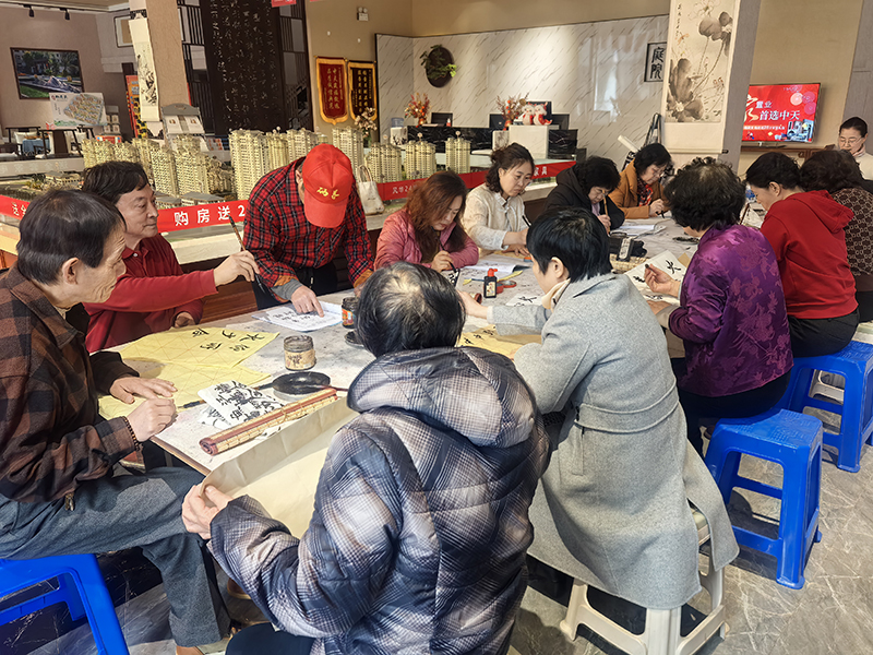 活動現(xiàn)場的沉浸式體驗更顯巧思,來賓在專業(yè)指導下完成"家""和""園"等主題創(chuàng)作,筆墨間勾勒出對未來生活的期待。特別設置的"書法盲盒"活動,將戶型圖、園林效果圖以卷軸形式呈現(xiàn),每幅作品展開都是驚喜。這種參與式營銷讓潛在客戶在文化共鳴中建立起情感認同。