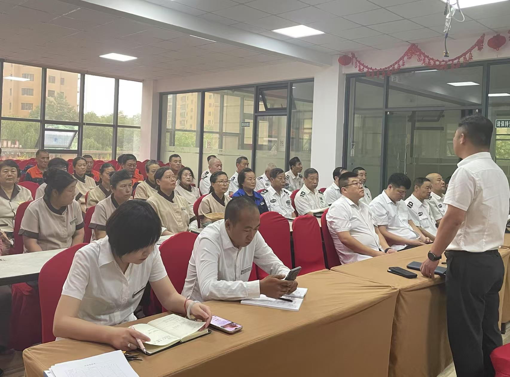 在烈日冉冉的夏日,為營(yíng)造整潔舒適的居住環(huán)境,桃花源物業(yè)服務(wù)中心于6月28日早晨8點(diǎn)在物業(yè)二樓會(huì)議室組織開展了一場(chǎng)以"重拳出擊治頑疾·全力整改換新顏的"專項(xiàng)整治行動(dòng)培訓(xùn),參加人數(shù)49人,由項(xiàng)目經(jīng)理進(jìn)行了整體的培訓(xùn)內(nèi)容。讓物業(yè)每個(gè)人深刻認(rèn)識(shí)衛(wèi)生整改的重要性與緊迫性,強(qiáng)化責(zé)任意識(shí);熟練掌握?qǐng)@區(qū)環(huán)境衛(wèi)生清潔標(biāo)準(zhǔn)、操作規(guī)范和高效整改方法;建立長(zhǎng)效管理意識(shí),助力園區(qū)形成常態(tài)化衛(wèi)生維護(hù)機(jī)制。