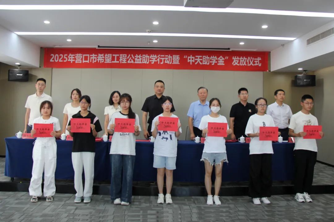8月18日下午,2025年營口市希望工程公益助學(xué)行動暨“中天助學(xué)金”發(fā)放儀式在中天集團總部會議室舉行。營口市團市委書記劉慶男,中天企業(yè)集團董事長于寶權(quán)、總裁于洪波,營口市團市委副書記李瀚霖、曹午陽,營口市教育局副局長關(guān)雪嬌,營口市慈善總會副會長黃渤以及獲得資助的35名學(xué)生,出席了本次發(fā)放儀式。