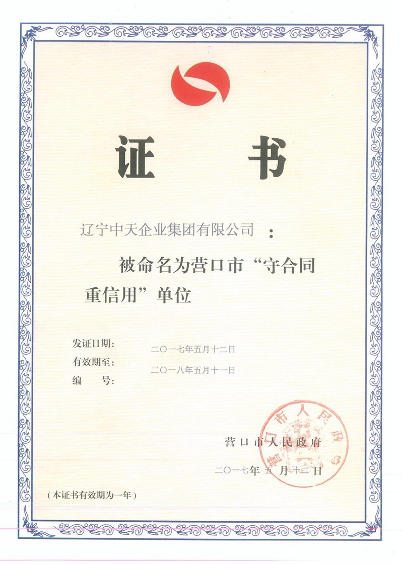 集團(tuán)連續(xù)十三載榮獲“守合同重信用”企業(yè)榮譽(yù)稱(chēng)號(hào)。中天集團(tuán)成立至今,已建立起自身獨(dú)特的“誠(chéng)信機(jī)制”,對(duì)業(yè)主說(shuō)到做到,對(duì)客戶(hù)說(shuō)到做到,與主管政府部門(mén)領(lǐng)導(dǎo)說(shuō)到做到,嚴(yán)格按合同履行各項(xiàng)責(zé)任與義務(wù),“共贏互利、信守承諾”得到了社會(huì)各界的一致認(rèn)可與好評(píng),集團(tuán)也走出了屬于中天特色的發(fā)展之路。連續(xù)十三年獲此殊榮,不僅是集團(tuán)恪守誠(chéng)信、規(guī)范經(jīng)營(yíng)的有力印證,也是對(duì)中天優(yōu)秀品牌信譽(yù)建設(shè)成果的充分肯定。